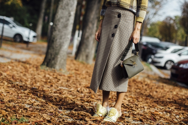与未来元素截然相反的复古元素也是并驾齐驱的风格,无论是棕色调的复古格纹还是暗色印花元素,都彰显着“老气”的感觉。