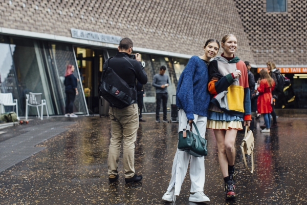 具有未来感的银色和金属元素广泛运用,比如Chanel的火箭包包和因素及膝靴,可是2018年春夏时装周街拍中最为抢眼的单品。